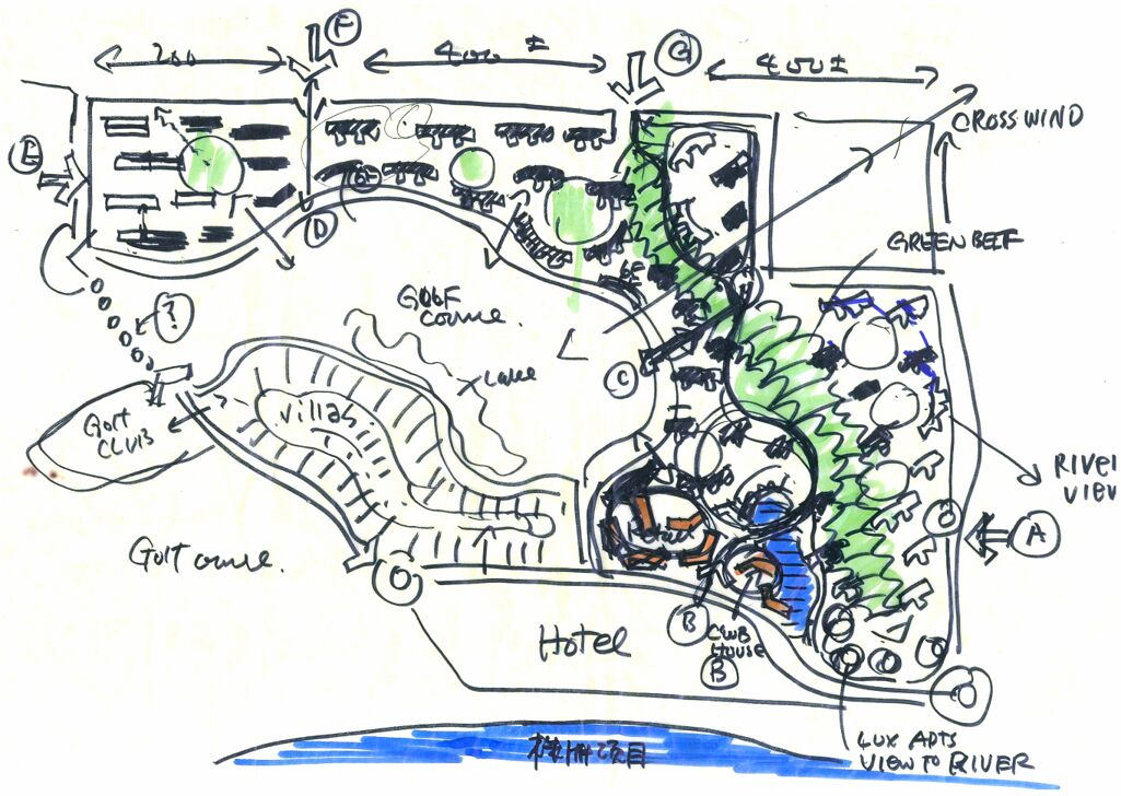 株洲湘水灣宛如一座微型城市,項(xiàng)目規(guī)劃的重點(diǎn)在于如何從城市環(huán)境的角度出發(fā),充分融合湘江和丘陵地貌的特征。規(guī)劃設(shè)計(jì)最大限度地保留基地的自然生態(tài)趣味,通過(guò)調(diào)整建筑與江岸的距離。 建筑依次從西南至東北展開(kāi),高度由低到高漸次遞增,形成多個(gè)靈動(dòng)、圍而不合的建筑組團(tuán)。整個(gè)布局俯瞰湘江,盡收千米江景。建筑形態(tài)、高度和空間尺度隨地形坡度而變化。項(xiàng)目?jī)?nèi)商業(yè)街、酒店、花園洋房、果嶺別墅、會(huì)所、精裝高層依次排列,和諧共存。